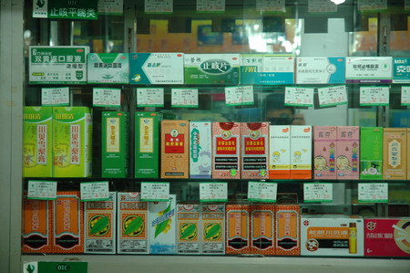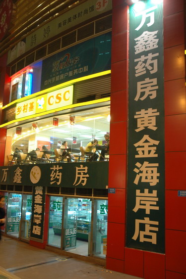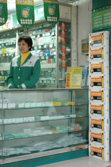 3號晚,藥交會前夜,我獨自暗訪位于建新南路口的萬鑫藥房(圖),以“攝記”自居向一位20開外的李姓女店員訴說咽喉不適。她熱心腸,介紹我用花旗參川貝枇杷膏?!奥犝f潘高壽的好”我探問。“治咳嗽,潘高壽就好”?!澳闶欠卧锷匣?,用這個,沒錯”……另扯談起數(shù)碼照相話題,她興之所致,送我XX花旗參枇杷膏(說是客戶送她兩瓶)。感其誠意,我也表明身份,直接問答:“潘高壽印象如何?”“大名牌啊”?!爸捞茋鴱?qiáng)嗎?”?!芭叮敲輪T!”。“戲好嗎?”?!拔覌屜矚g”…… 她最后說:“OTC代表也來聯(lián)系過,可能是銷量與品種不夠吧,未被列入潘高壽的目標(biāo)店……”