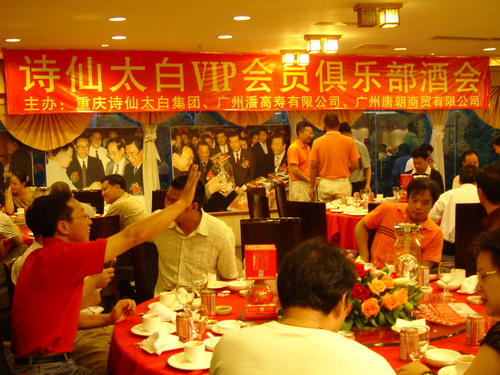 中秋、國(guó)慶來(lái)臨之際,我司與重慶詩(shī)仙太白集團(tuán)、廣州唐朝商貿(mào)有限公司在風(fēng)光秀麗的珠江之畔舉行“詩(shī)仙太白VIP會(huì)員俱樂(lè)部酒會(huì)”。這是我司屬下“廣州潘高壽天然保健品公司”作為名酒“詩(shī)仙太白”華南地區(qū)總代理后的又一大型推介活動(dòng)。酒會(huì)邀請(qǐng)了珠三角地區(qū)的酒業(yè)重點(diǎn)商業(yè)客戶代表、專職公務(wù)接待人員和社會(huì)名流近200人參加。
