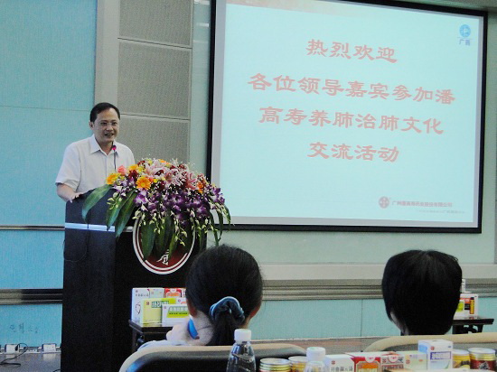 盧其福高級經理再以ppt生動介紹潘高壽公司的發展歷程、實力,重點介紹潘高壽養肺治肺的文化。